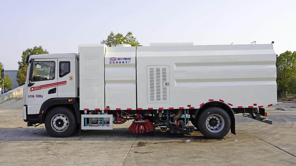 7、程力牌純電動洗掃車具有路面清洗、路面清掃、路緣清洗、路緣和路緣石立面洗刷、低壓沖洗、噴霧除塵