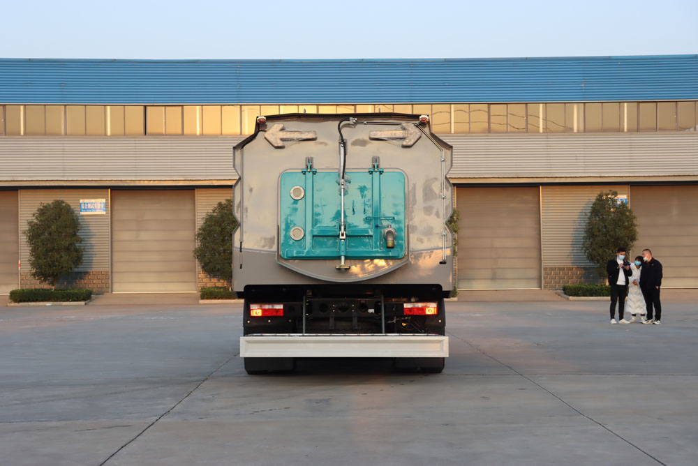四、其他說明: 東風(fēng)凱普特純電動(dòng)洗掃車是我公司研制開發(fā)的集掃路車和高壓清洗車功能于一體 的高效環(huán)衛(wèi)車。整車動(dòng)力強(qiáng)勁,結(jié)構(gòu)先進(jìn),掃、吸、洗相結(jié)合,作業(yè)效果好。一次作業(yè),三重 收獲,道路清掃、路面高壓清洗、垃圾污水收集一次完成,此洗掃功能解決了不可視垃圾清理 的作業(yè)難題,從源頭上遏制道路揚(yáng)塵,還原路面本色。