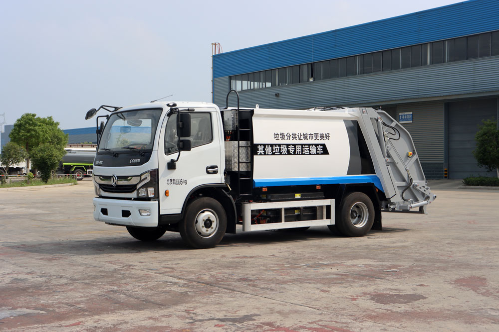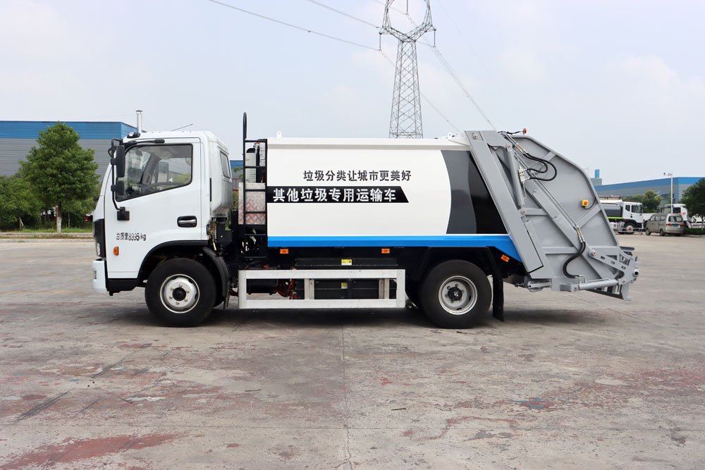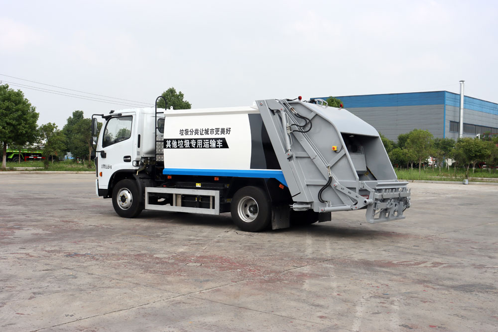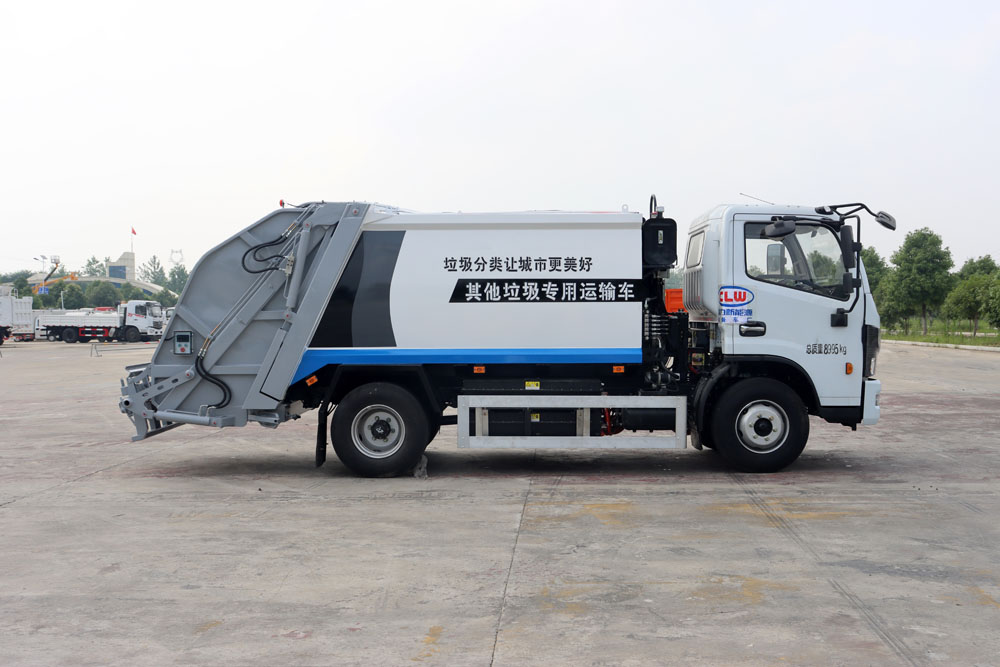 四、其他說明: 東風凱普特純電動二類底盤的基礎上,加裝垃圾箱、垃圾填充器、液壓系統,由機械、液壓(氣路)、電器三部分合為一體的專用垃圾處理、轉運作業車。整車為全密封型,自行壓縮、自行傾倒、壓縮過程中的污水全部進入污水箱,徹底的解決了垃圾運輸過程中的二次污染,具有壓力大、密封性好、