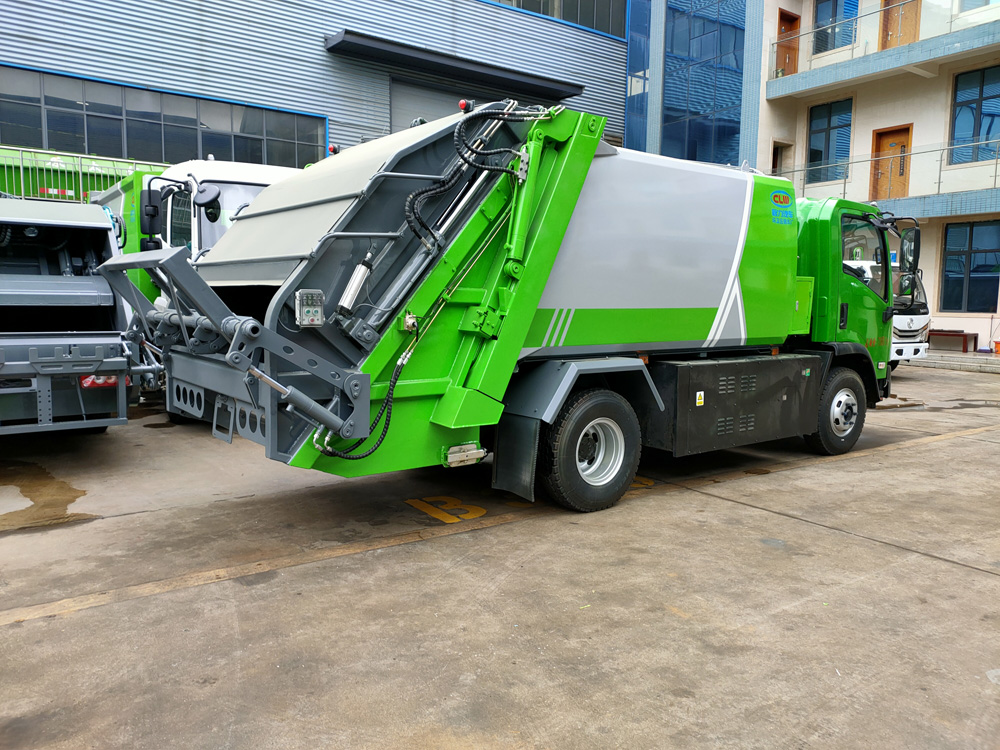 6. 方便的操作控制,作業(yè)控制盒分別安裝在駕駛室內和車尾右側,左側帶緊急停止按鈕,配備遙控器,駕駛室內的作業(yè)控制盒可控制推擠卸料和選擇操作模式(如自動或手動),車尾的作業(yè)控制盒則控制壓填機構和翻桶機構的作業(yè),使用操作十分方便。特別是在垃圾填埋場,作業(yè)人員無須下車即可完成卸料和污水排放。