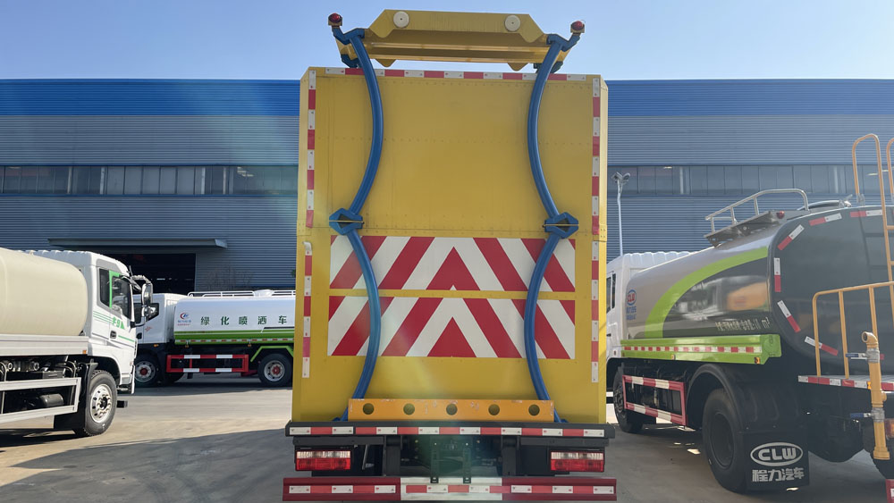 ②當(dāng)車輛前部安裝清洗裝置后部安裝防撞裝置時,外形長與前伸/前懸/軸距/后懸(mm)對應(yīng)關(guān)系:8968=1310+1148+3950+2560,9100=1310+1280+3950+2560, 9275=1310+1455+3950+2560,