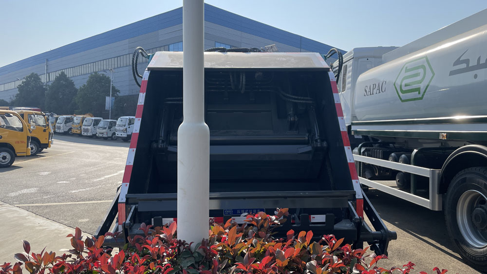 二、上裝配置: 新款平板或弧形箱體,式樣美觀,箱體全滿焊,5-8方箱體厚度邊4底4,10-12方邊4底5,12方以上邊5底5,采用國內著名品牌配件,揚州中煤或合肥長源油泵和液壓多路換向閥、博利或海普瑞斯油缸,杰特高密度液壓油管,帶掛桶或三角斗翻轉進料,翻轉機構可以翻轉國標120、240垃圾桶,帶壓縮推板,后蓋帶液壓鎖緊。PLC一鍵操控系統,可駕駛室內和室外雙電控操作,方便實用。尾部帶密封橡膠墊,污水收集箱,可防污水滴漏二次污染。