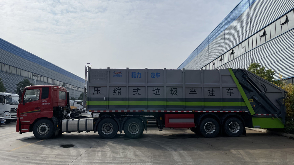 四、其他說(shuō)明: 半掛式設(shè)計(jì)使其車(chē)身較長(zhǎng),車(chē)廂容積一般可達(dá) 30-40 立方米甚至更大,能裝載大量垃圾,可有效減少運(yùn)輸次數(shù),提高垃圾清運(yùn)效率,適合城市大型垃圾轉(zhuǎn)運(yùn)站、大型社區(qū)或商業(yè)區(qū)等垃圾集中區(qū)域的垃圾清運(yùn)。對(duì)于生活垃圾、建筑垃圾、工業(yè)垃圾等多種類(lèi)型垃圾,只要在車(chē)輛設(shè)計(jì)承載范圍內(nèi),均可進(jìn)行裝載運(yùn)輸。較大的空間也便于收納體積較大的垃圾。