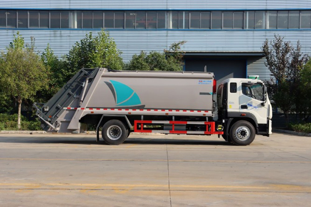 二、上裝配置: 新款平板或弧形箱體,式樣美觀,箱體全滿焊,5-8方箱體厚度邊4底4,10-12方邊4底5,12方以上邊5底5,采用國內(nèi)著名品牌配件,揚(yáng)州中煤或合肥長源油泵和液壓多路換向閥、博利或海普瑞斯油缸,杰特高密度液壓油管,帶掛桶或三角斗翻轉(zhuǎn)進(jìn)料,翻轉(zhuǎn)機(jī)構(gòu)可以翻轉(zhuǎn)國標(biāo)120、240垃圾桶,帶壓縮推板,后蓋帶液壓鎖緊。PLC一鍵操控系統(tǒng),可駕駛室內(nèi)和室外雙電控操作,方便實(shí)用。尾部帶密封橡膠墊,污水收集箱,可防污水滴漏二次污染。