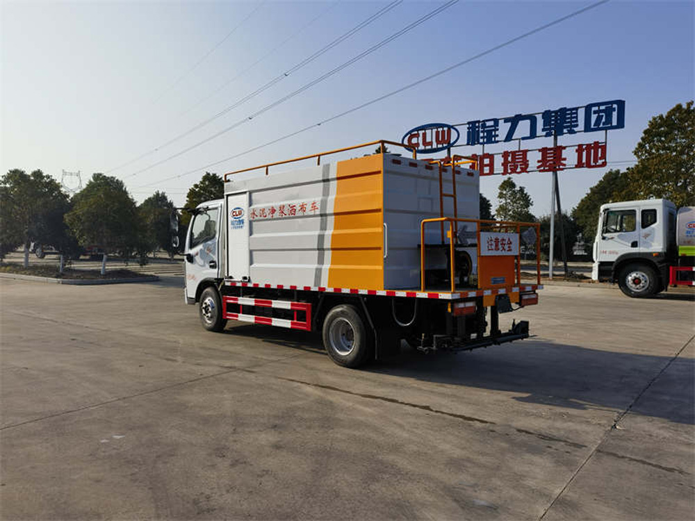 四、其他說明: 水泥罐、清水罐采用 Q235 優質碳鋼制作,高壓水泵,水泥砂漿泵(專用),攪拌系統,液壓系統,15 米高壓清洗管道(帶卷盤、手持清洗槍),尾部 13 個水泥漿專用噴頭,最大灑布寬度 4 米。其它配置常規,可選裝袋裝水泥提升裝置(用于袋裝水泥向罐體頂部運輸)。