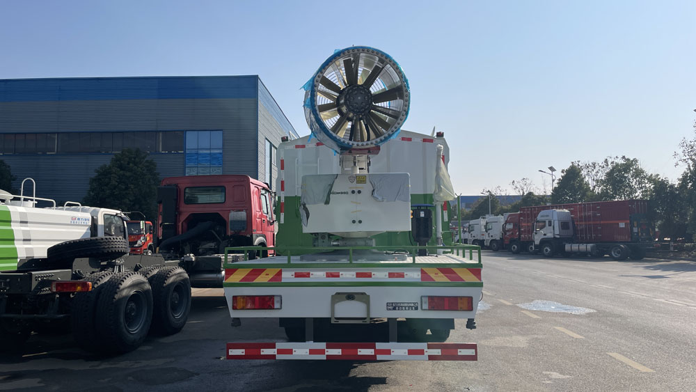 三、多功能抑塵車工作原理:霧炮機將水高壓霧化為50μm左右的細小顆粒,再通過遠程風炮將水霧送至100至120米半徑范圍內,作業5分鐘即可實現覆蓋區域面積4.5萬多平方米,是局部降低因PM2.5、PM10顆粒物超標而造成的霧霾污染的理想技術,是一種更先進、更科學、能耗更低、凈化效果顯著的新型空氣凈化技術。