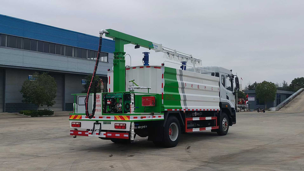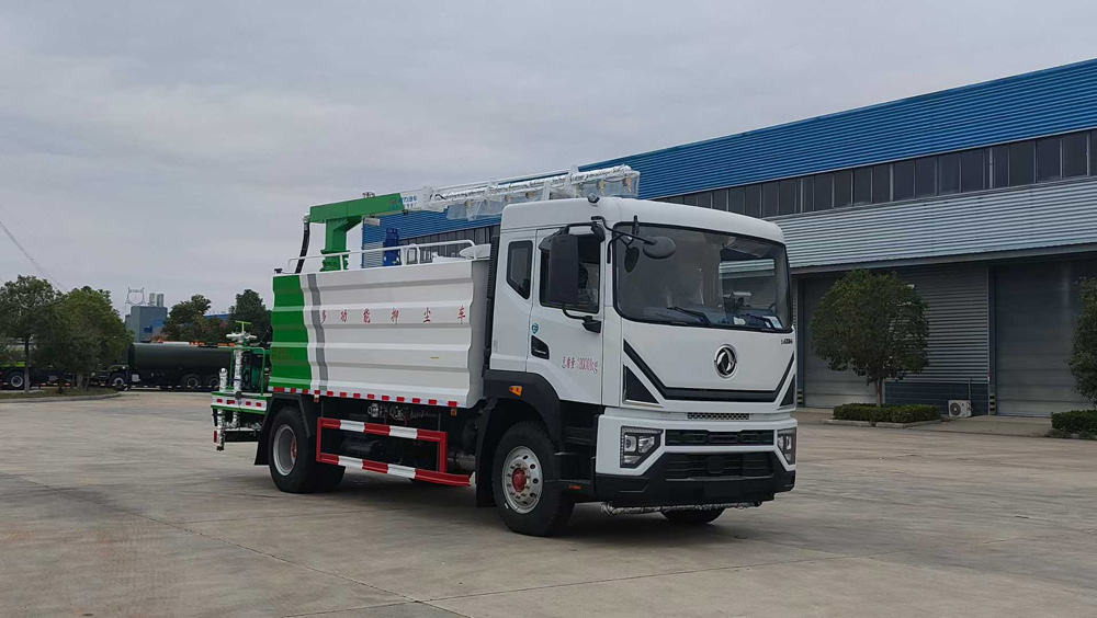 三、多功能抑塵車工作原理:霧炮機將水高壓霧化為50μm左右的細小顆粒,再通過遠程風炮將水霧送至100至120米半徑范圍內,作業5分鐘即可實現覆蓋區域面積4.5萬多平方米,是局部降低因PM2.5、PM10顆粒物超標而造成的霧霾污染的理想技術,是一種更先進、更科學、能耗更低、凈化效果顯著的新型空氣凈化技術。